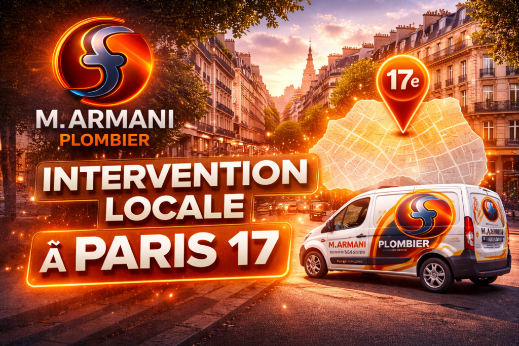 Les habitants du 17ᵉ arrondissement recherchent souvent un plombier Paris 17 pour une urgence plomberie, une fuite d’eau ou un dépannage rapide. M. Armani intervient pour tous les besoins : plombier urgence Paris 17, dépannage plomberie rapide, débouchage canalisation, réparation chauffe-eau, plombier disponible 24h/24, intervention plomberie immeuble Paris 17, plombier local Batignolles, plombier Ternes, plombier Pereire, plombier Épinettes et dépannage fuite d’eau Paris 17.